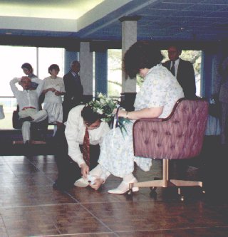 ![]() Jason and Teresa That's not the American Express beer he's holding ... we all marveled .. not only did Teresa dress him up but she took him out in public too. |