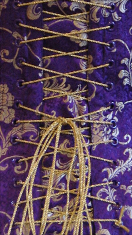 Also at corsetmakers.com, I found glossy purple grommets that EXACTLY matched the purple of the brocade .. boy, do they look wonderful.