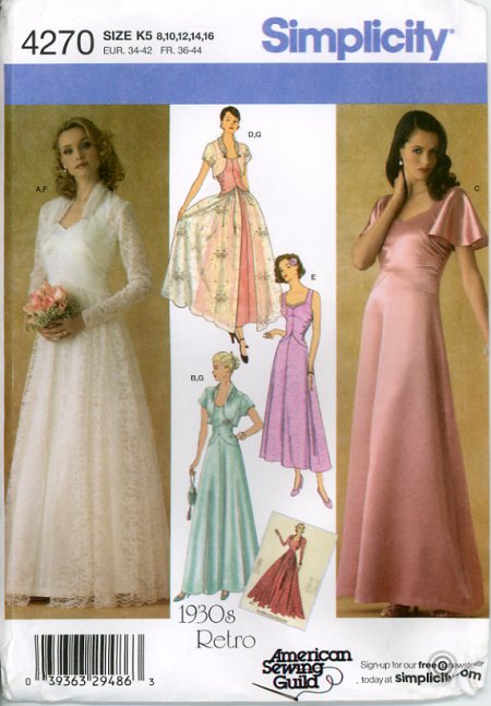 The shrug is from Simplicity 4270, a 1930's retro inspired pattern. Lisa chose the long sleeved shrug, as shown in the white sample in the picture, which will be made from the skirt fabric. The pattern calls for the shrug to be completely lined to the edge so that the interior is beautifully finished. However, since the skirt fabric is that lovely sheer, we decided that a lining would spoil the effect.